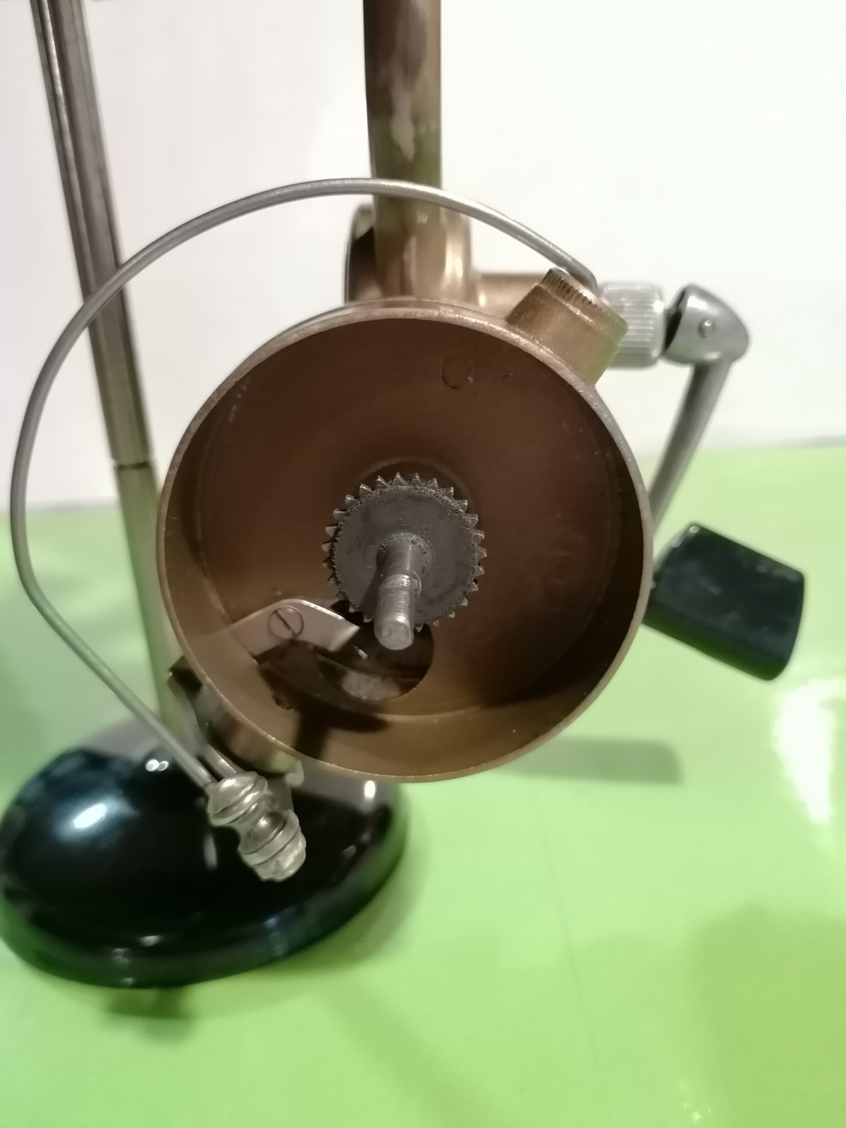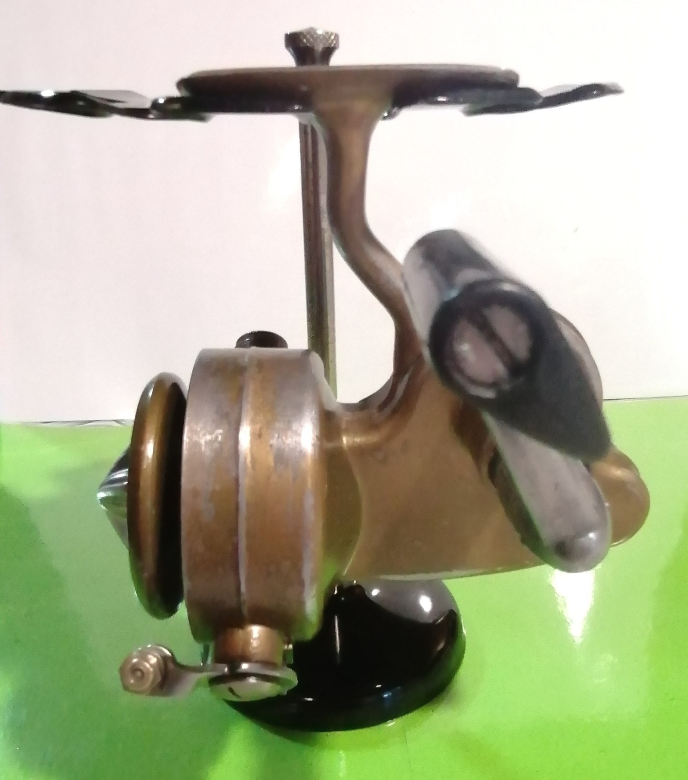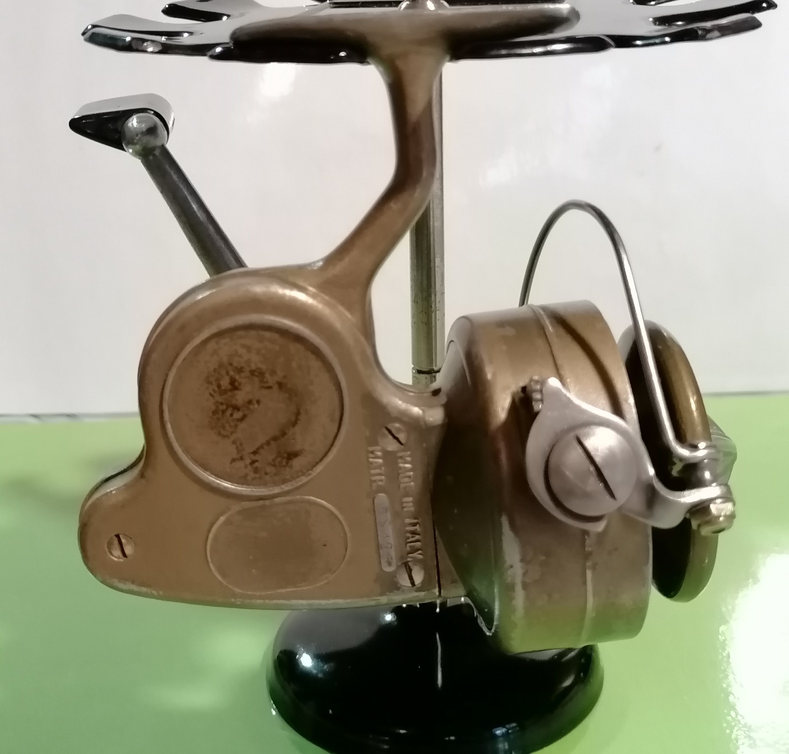 Mulinello alcedo omnia gambo piegato vintage senza medaglia con doppia bobina